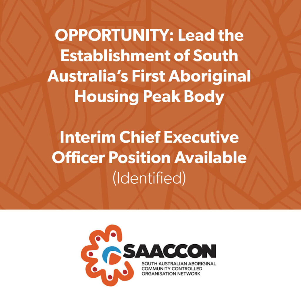 Position open: Interim Chief Executive Officer (Identified Position) Lead the Establishment of South Australia’s First Aboriginal Housing Peak Body SAACCON is seeking an experienced and respected Aboriginal leader to take on a historic opportunity — establishing South Australia’s first Aboriginal Housing Peak Body. As the Interim Chief Executive Officer (Interim CEO), you will lead the creation […]